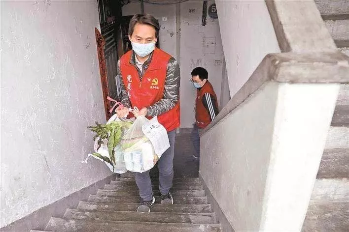 新秀社區(qū)黨員志愿者為居家醫(yī)學(xué)觀察的家庭配送食品物資(深圳晚報(bào)記者楊少昆攝)
