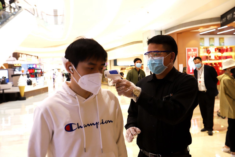據悉,壹方城對商場進行圍閉管理,設置10個出入口,并安排專人管理,所有進入商場人員體溫測試為37.3攝氏度以下并佩戴口罩才能進入。