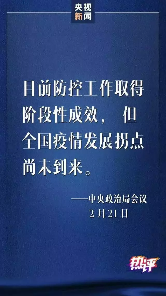 2月21日召開(kāi)的中央政治局會(huì)議作出冷靜判斷——雖然疫情防控工作取得階段性成效,但“全國(guó)疫情發(fā)展拐點(diǎn)尚未到來(lái)”。
