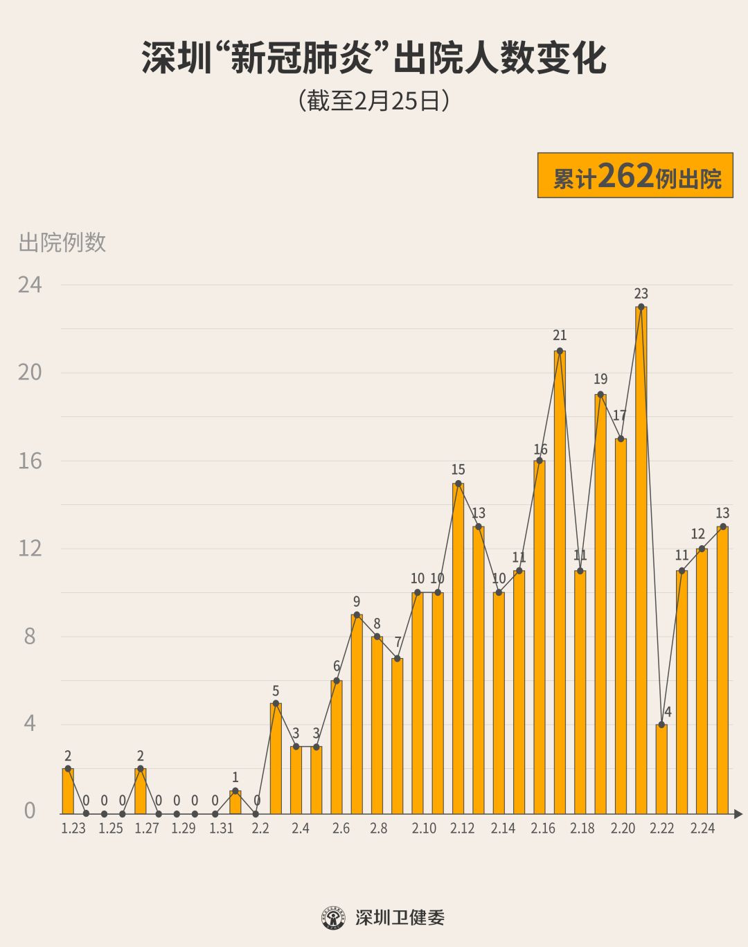 2月25日下午,經(jīng)專(zhuān)家組會(huì)診,深圳有13名新型冠狀病毒肺炎確診患者出院,累計(jì)達(dá)262人,連續(xù)23天有人出院。