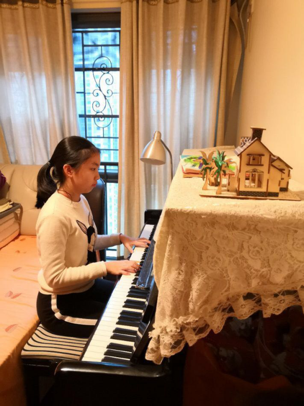 創(chuàng)作過程中,凃依舟遇到不少瓶頸。“靈感來時,我先彈出來,再記下來。但當(dāng)化作音符時,卻找不到當(dāng)時的旋律了?!眱蛞乐壅f。為解決難題,爸爸凃永剛不斷為女兒支招。“邊彈邊完善。不用刻意去渲染,真情流露就是最飽滿地創(chuàng)作?!眱蛴绖倢ε畠赫f。一周后,《在遠處想著你》完成了。“我們非常支持凃依舟做這件事,看到全國都在為武漢加油,很感動,希望疫情早點結(jié)束。”凃永剛說。