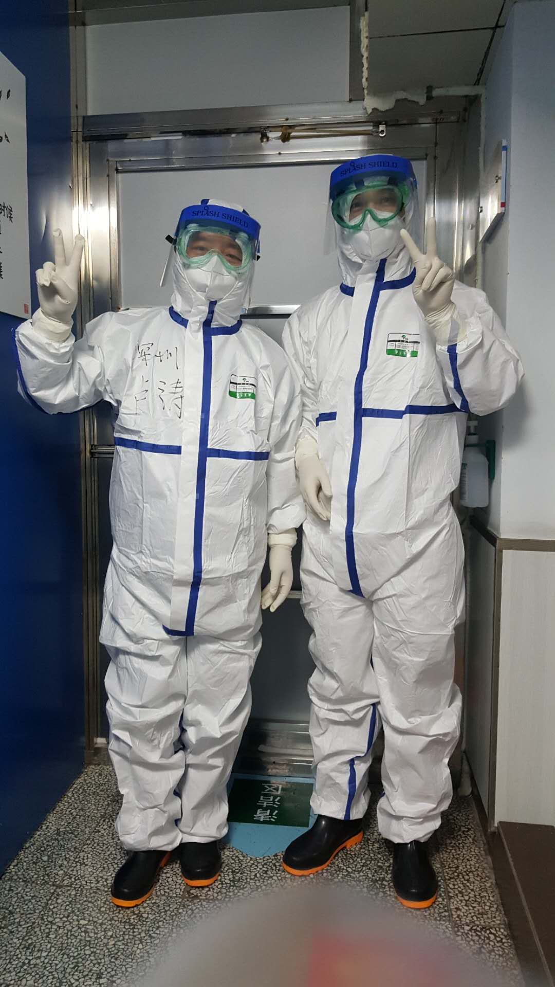 一切穿戴妥當(dāng),請護士長拍個照,留下了最珍貴最勇敢的照片。深吸一口氣,推門……我和我的隊員們一樣,沖上了最前沿!
