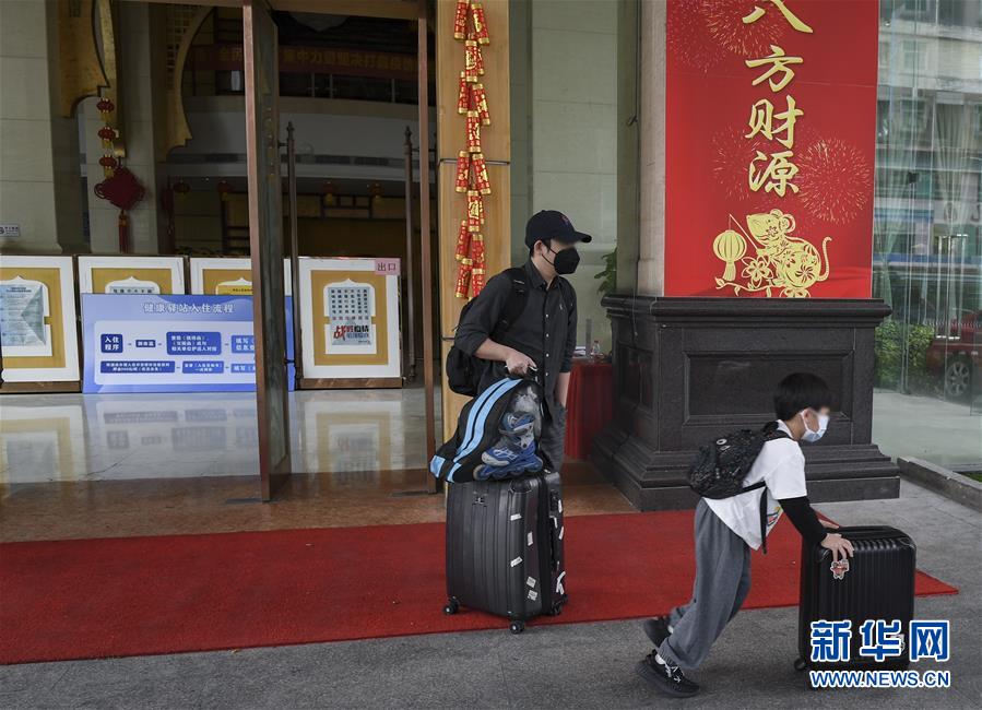 2月27日,結(jié)束留觀的一家人離開(kāi)位于深圳龍崗的一家“健康驛站”。 新華社記者 毛思倩 攝