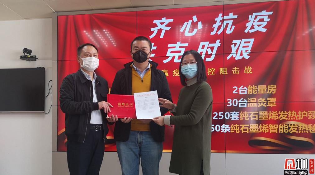 2月7日,烯旺科技向龍崗中心醫(yī)院捐贈(zèng)了1臺(tái)石墨烯殺菌消毒康復(fù)房,1臺(tái)溫炙罩,10個(gè)石墨烯發(fā)熱毯、10個(gè)石墨烯護(hù)頸,價(jià)值10萬(wàn)元。