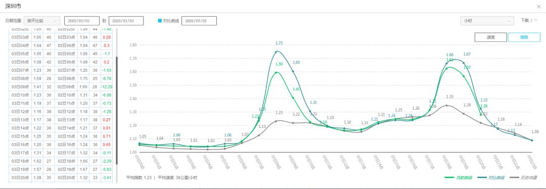 3日擁堵延時指數(shù)與2日和歷史均值對比