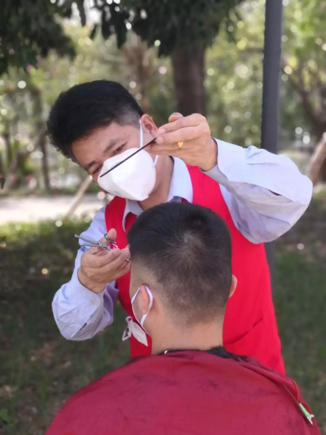 這天,垃圾吊師傅石明山急匆匆找到寶安能源生態(tài)園團總支志愿者服務(wù)隊,“我以前開過理發(fā)店,工具就在宿舍,我可以義務(wù)給大家理發(fā)!”大樹下,一套工具,兩把塑料凳,老石的“疫剪理發(fā)站”就齊活了。一個下午,老石一刻不停地為近50人修剪了精干的發(fā)型,并獲得“顧客”的一致好評。老值長陳林生理完發(fā)感慨道:“老石在廠里十幾年了,這么多年都是垃圾吊隊伍的中堅力量,沒想到理發(fā)技術(shù)也這么好!”天黑了,預(yù)約隊伍里還有數(shù)十人在排隊,石明山說,明天我白轉(zhuǎn)夜,等我后天下夜班,“疫剪理發(fā)站”咱們繼續(xù)!