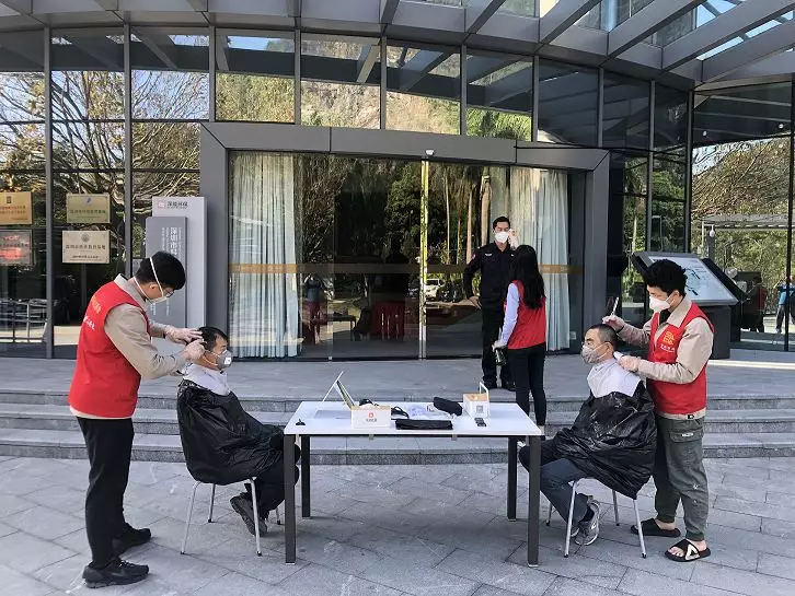 二月二,龍?zhí)ь^,一把椅子、一面鏡子、一套剃發(fā)工具,鹽田能源生態(tài)園的簡易理發(fā)室開張啦。防疫先鋒戰(zhàn)斗隊五人義剪小分隊隨即開始行動,對理發(fā)室開啟自然通風(fēng),對理發(fā)用具進行消毒,清潔雙手,全部使用一次性“斗篷”,確保理發(fā)過程中一“客”一換一消毒……準(zhǔn)備工作做好后,Tony老師開啟微信排號,統(tǒng)一戴上口罩,測量體溫登記后,提拉剪推,一氣呵成。本次義剪為30余名員工解決了“頭”大事,大家“輕裝上陣”,將以更飽滿的精神投入到疫情防控和安全生產(chǎn)工作中。