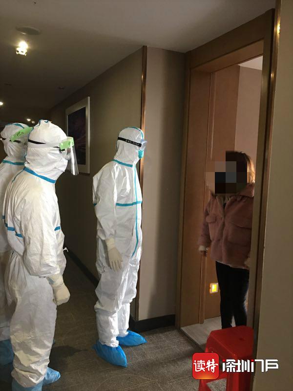醫(yī)療隊(duì)員在留置觀察點(diǎn)對(duì)留觀人員進(jìn)行回訪(fǎng)。 深圳醫(yī)療隊(duì)供圖