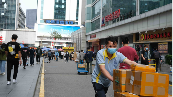嚴禁外賣、快遞人員進入市場經(jīng)營場所,設置快遞物品安放區(qū)域,實行非接觸式交接。
