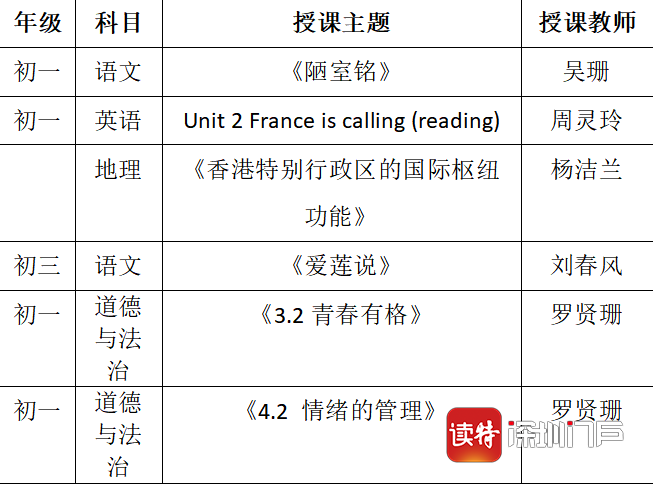 深圳實驗學(xué)校中學(xué)部課程表