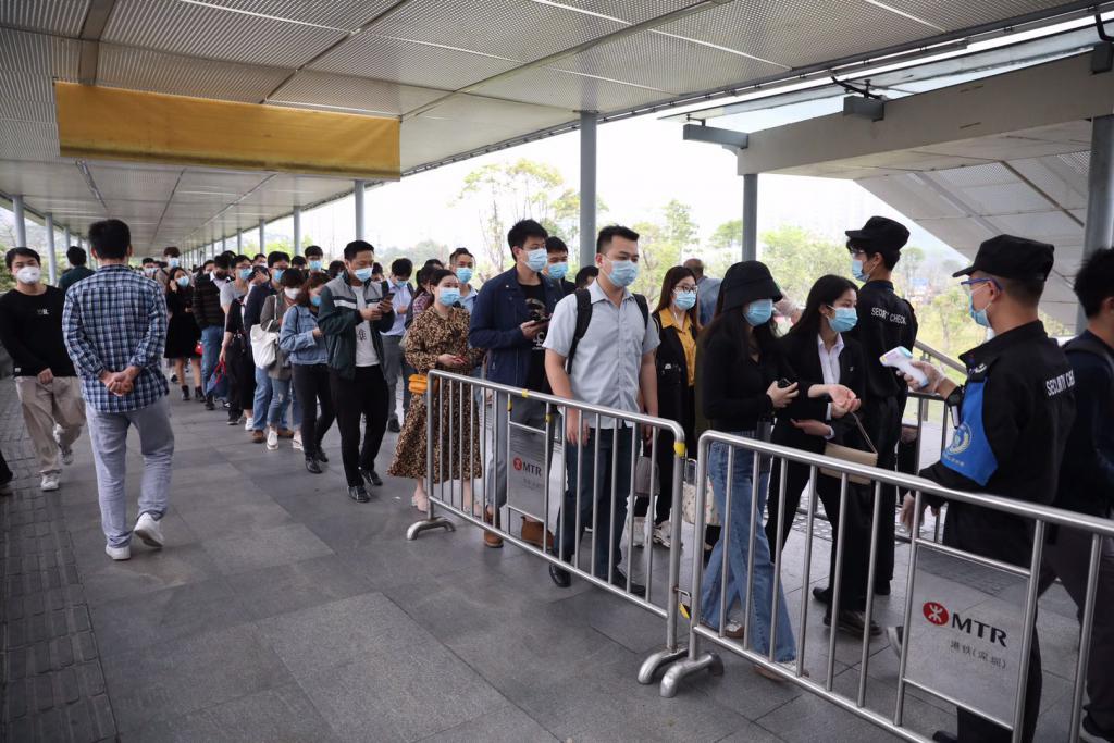 ▲民樂(lè)地鐵站入口處排起了長(zhǎng)隊(duì)。