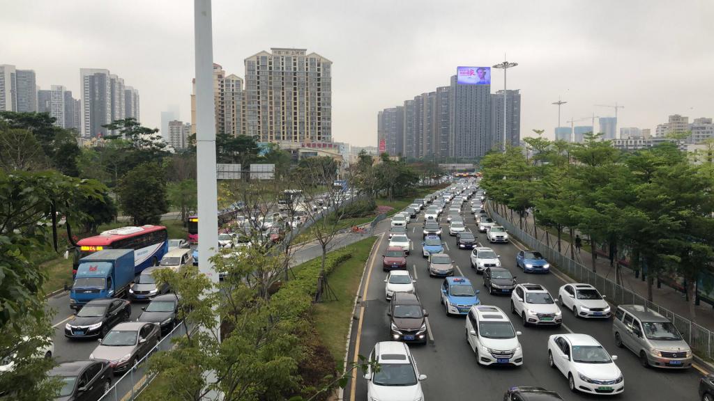 8時18分,深晚記者在民樂地鐵站附近的人行天橋上看到,此時梅林關(guān)雙方向車流量非常大,車輛一直處于走走停停的狀態(tài)。
