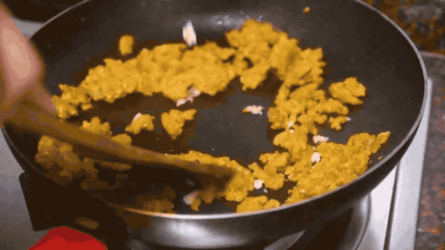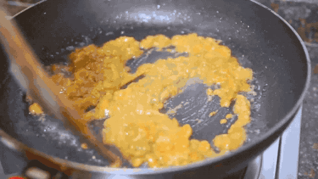 油鍋燒熱,不斷翻炒海膽,直到把海膽的水分炒干,只有動(dòng)作快和把握好火候,才能保留海膽的鮮度。海膽炒得呈粒狀就可加入蒜蓉,這樣可以更好地刺激海膽香味。把米飯和海膽融合一起翻炒,使每一粒米飯都充分接觸油和熱量,這樣的炒飯才會(huì)松軟可口。最后加一點(diǎn)醬油,灑上一把蔥花銷(xiāo)魂的海膽炒飯就出爐啦。