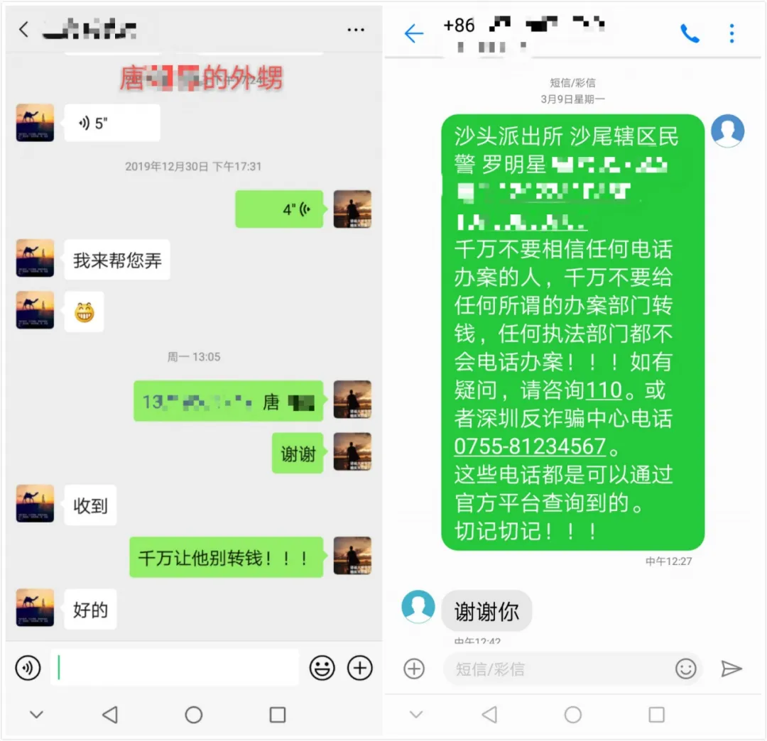3月9日上午,唐先生也接到了一通詐騙來電。民警在接到預(yù)警后,立即趕到唐先生住所,發(fā)現(xiàn)唐先生并不在住所,而且手機(jī)處于關(guān)機(jī)狀態(tài)。爭分奪秒時(shí)刻,民警通過其老鄉(xiāng)找到了唐先生的外甥,成功聯(lián)系上了在外地的唐先生。原來,唐先生接到了詐騙電話,對方詢問唐先生是否需要貸款,表示他們可以用非常簡單的手續(xù)幫忙貸到款,前提是需要先交保證金。就在唐先生猶豫不決的時(shí)候,接到了民警和外甥的電話,避免了可能造成的損失。