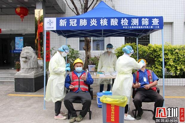 地鐵8號線二期工地內(nèi)對工人進行新冠肺炎核酸檢測篩查。