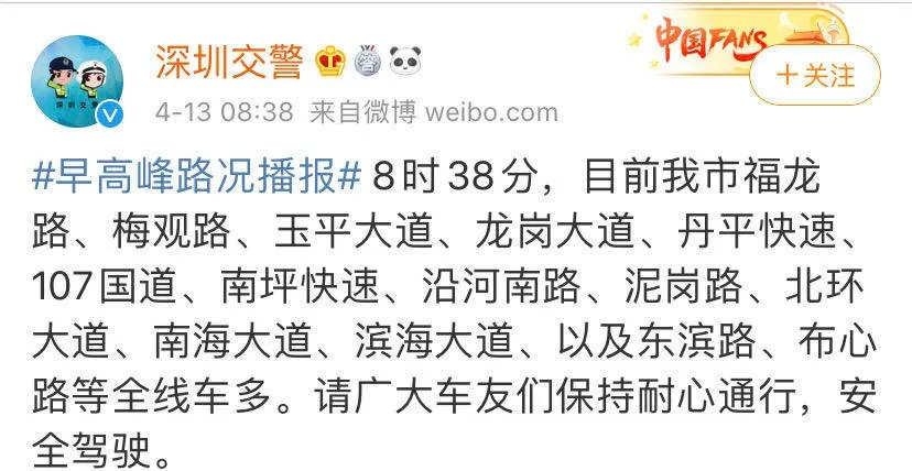 另外還有粉絲反映清平高速、南坪快速、泥崗路及福龍路、北環(huán)大道、濱海大道……全都存在車多緩行的現象,橫跨各區(qū)的主要交通干道幾乎都在堵堵堵,無一幸免。