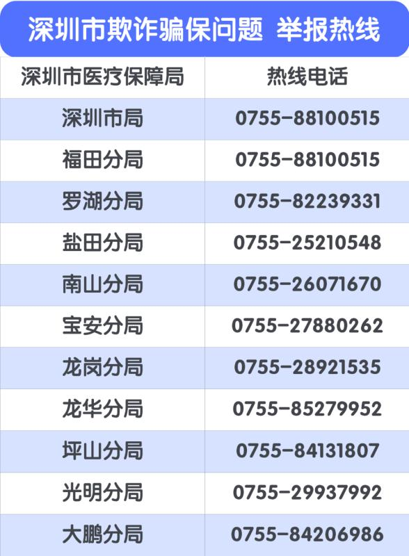 市醫(yī)保局已在深圳市各區(qū)設立投訴舉報電話,歡迎廣大市民共同參與醫(yī)?;鸨O(jiān)督管理。市民可通過實名舉報和匿名舉報方式檢舉、揭發(fā)欺詐騙保行為,經查證屬實的,將根據(jù)《深圳市欺詐騙取醫(yī)療保障基金行為舉報獎勵實施細則(試行)》對舉報人予以獎勵,獎金最高可達10萬元?。ㄓ浾?莊瑞玉)