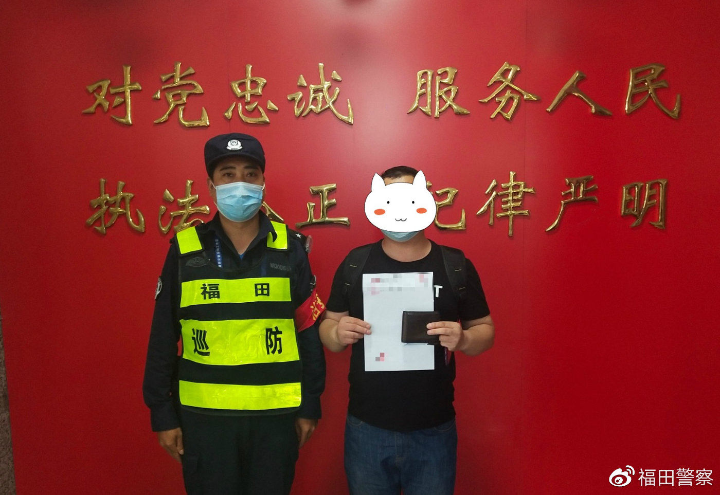 4月5日上午,深圳市公安局福田分局南園派出所隊員段忠孝在回所交接班路途中,在地上發(fā)現(xiàn)一個遺落的錢包,打開仔細一看,內(nèi)有銀行卡、社???、身份證、現(xiàn)金410元人民幣等物品,還有一張外出務工人員健康證明。
