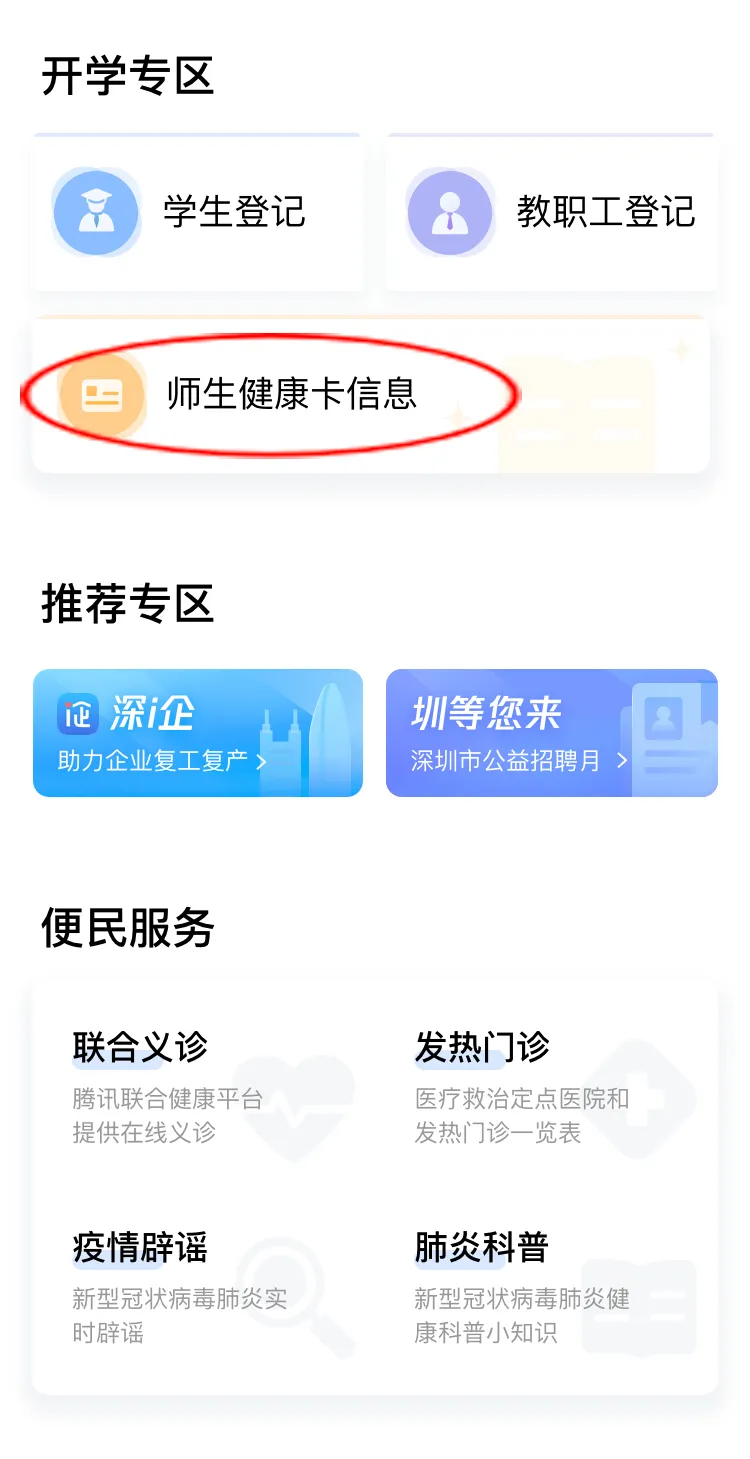 在開(kāi)學(xué)專區(qū),點(diǎn)擊“師生健康卡信息”,進(jìn)入師生健康卡人員列表。