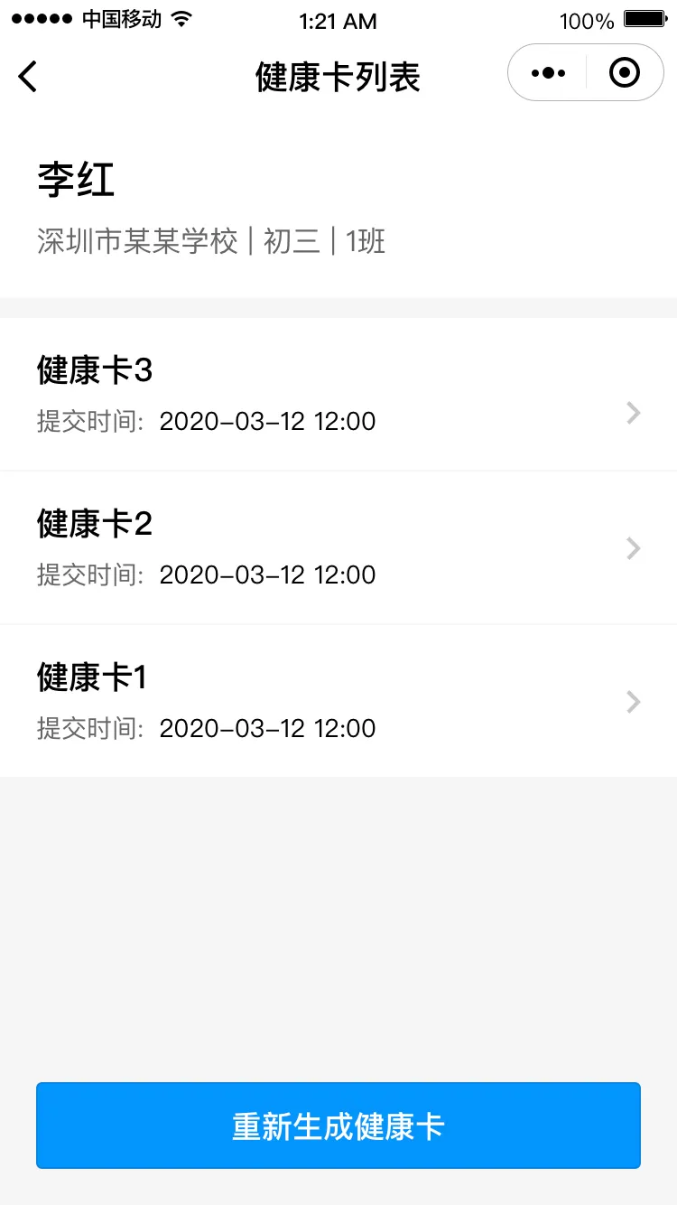 若不符合返校條件,需在符合條件后,點(diǎn)擊“重新生成健康卡”再次申報(bào)。