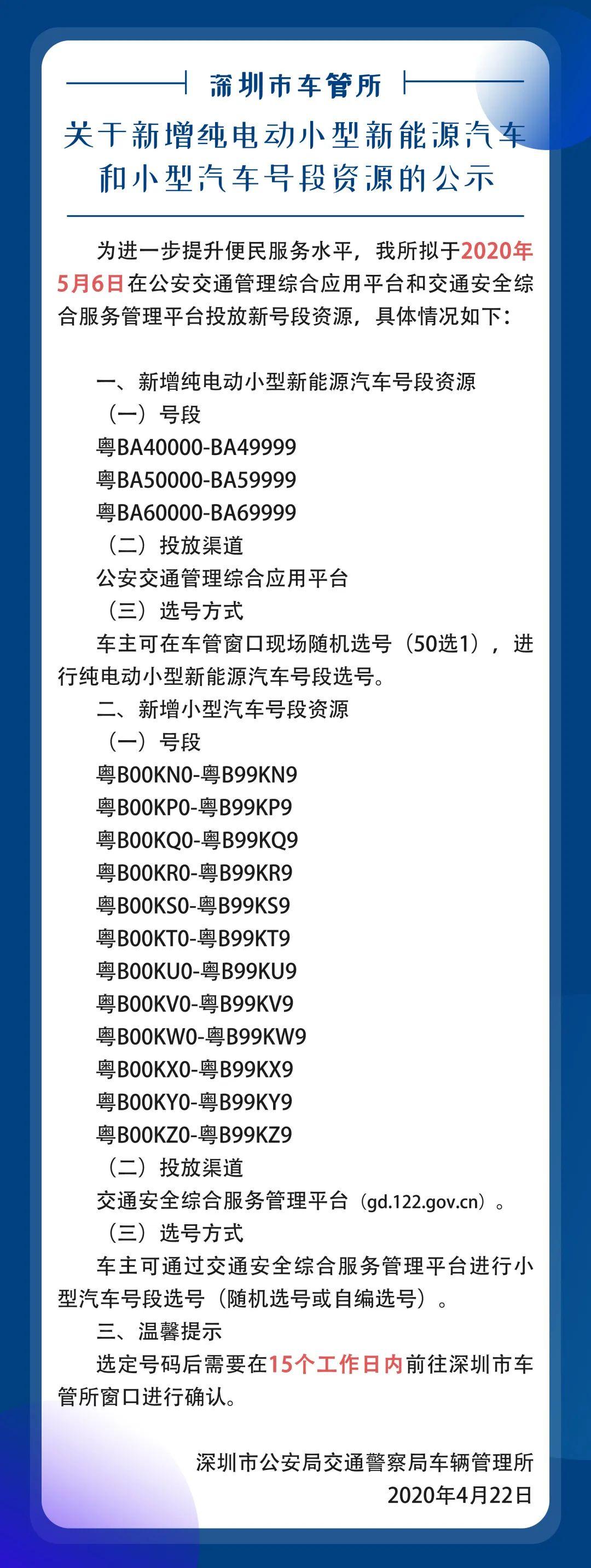 見(jiàn)圳客戶端?深圳新聞網(wǎng)2020年4月23日訊 為進(jìn)一步提升便民服務(wù)水平,深圳市車管所擬于2020年5月6日在公安交通管理綜合應(yīng)用平臺(tái)和交通安全綜合服務(wù)管理平臺(tái)投放新號(hào)段資源。具體情況如下: