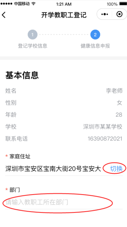 ③完成健康信息申報(bào),包括選擇家庭住址、填寫(xiě)所在部門(mén)、申報(bào)健康情況等,請(qǐng)勾選申報(bào)承諾,點(diǎn)擊“生成師生健康碼”即可完成健康申報(bào)。