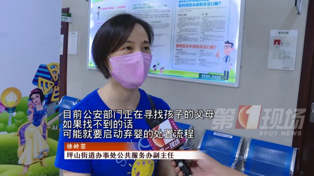 目前,孩子暫時(shí)由坪山街道的民政部門代為照料。工作人員表示,如果找不到孩子的父母的話,可能就要啟動(dòng)棄嬰的處置流程。