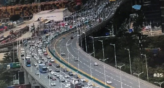17時(shí)許,惠深沿海高速葵涌收費(fèi)站至大梅沙路段東行方向車多緩行,執(zhí)勤民警對土洋、葵涌出口進(jìn)行間段性交通管制,溪涌至大梅沙隧道路段返程方向出現(xiàn)排隊(duì)緩行。