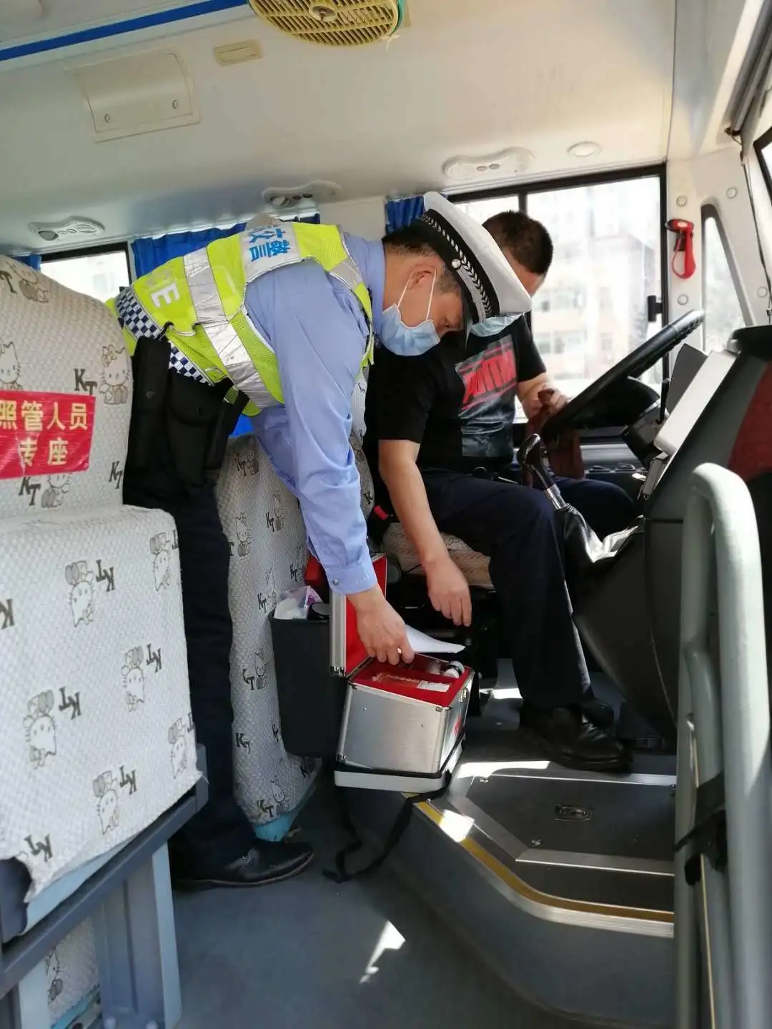 檢查校車車況及安全裝置,是否落實(shí)“每個(gè)座位一條安全帶”、配備行駛記錄功能的衛(wèi)星定位裝置、干粉滅火器、急救箱和照管人員座椅(位)、應(yīng)急出口和應(yīng)急錘(逃生錘)等安全設(shè)備、噴涂放大牌號和統(tǒng)一顏色、粘貼標(biāo)識等。