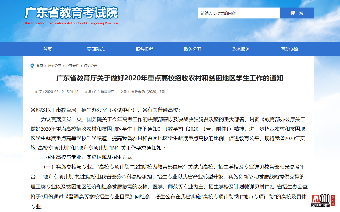 見圳客戶端·深圳新聞網(wǎng)2020年5月13日訊(見圳客戶端、深圳新聞網(wǎng)記者 吳英敏 金洪竹)5月13日,記者從廣東省教育廳獲悉,為進(jìn)一步拓寬農(nóng)村和貧困地區(qū)學(xué)生就讀重點(diǎn)高等學(xué)校升學(xué)渠道,提高廣東省農(nóng)村和貧困地區(qū)學(xué)生就讀重點(diǎn)高校的比例,促進(jìn)教育公平,2020年廣東省將實(shí)施“高校專項(xiàng)計(jì)劃”和“地方專項(xiàng)計(jì)劃”,做好重點(diǎn)高校招收農(nóng)村和貧困地區(qū)學(xué)生工作。