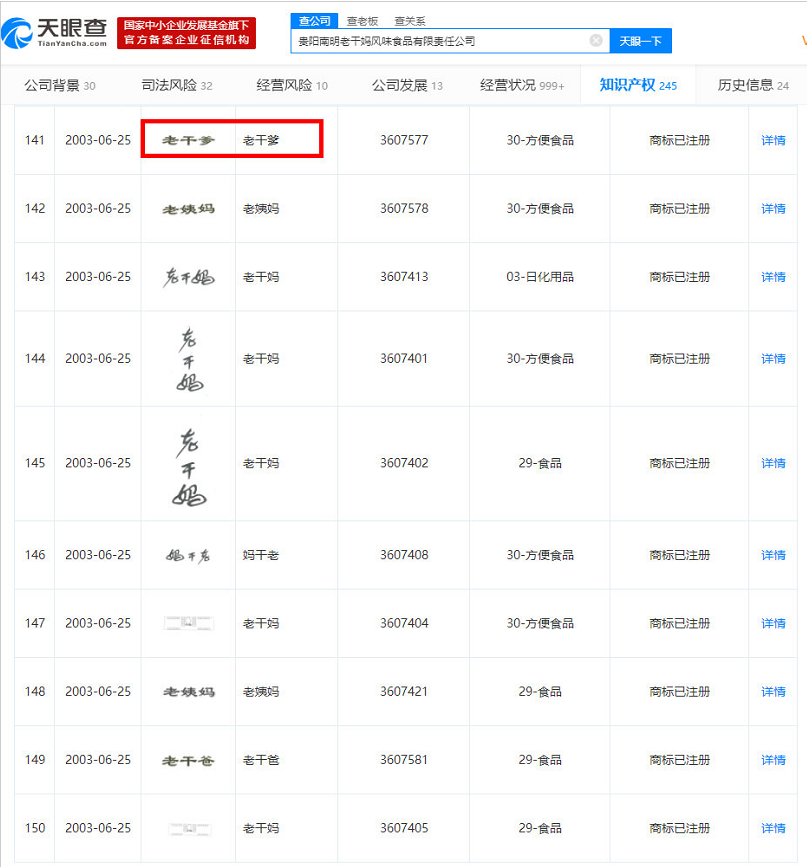 當(dāng)時(shí)老干媽先走出貴州,紅遍大江南北,因受山寨困擾,便把“老干媽”“老千媽”“老干娘”、“老干爹”、“干兒子”……等商標(biāo)都給注冊(cè)了,老干爹無奈退出市場。