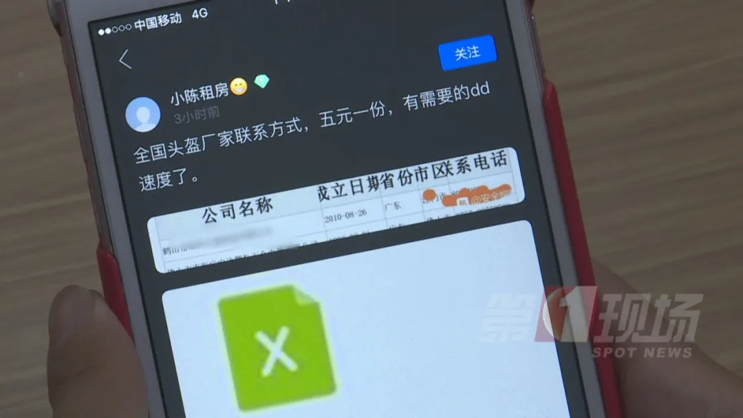 在一個社交平臺上,就有以33元的單價,收購十萬個頭盔的買主。還有的人則是手握訂單,要找生產(chǎn)頭盔的廠商。更有甚者,以頭盔廠商的聯(lián)系方式作為資源,以五元4000個聯(lián)系方式,進(jìn)行叫賣。