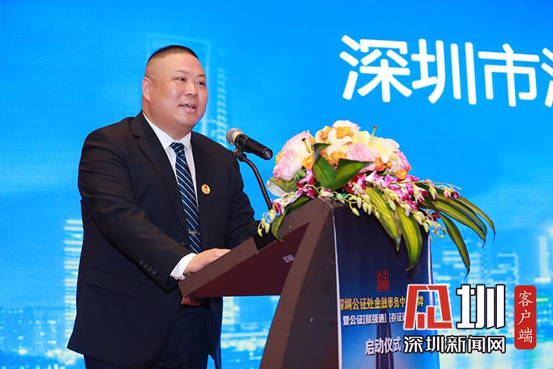 啟動(dòng)儀式現(xiàn)場(chǎng),深圳市司法局局長(zhǎng)蔣溪林表示,深圳公證處“金融事務(wù)中心”成立以及公證“賦強(qiáng)通”“存證通”的上線是深圳公證處在司法改革背景下不斷拓展服務(wù)領(lǐng)域的重大突破,是新形勢(shì)下推進(jìn)新型公證業(yè)務(wù)的重要舉措。希望深圳公證處與各部門、行業(yè)深度融合,加強(qiáng)理論與實(shí)踐的協(xié)作交流,實(shí)現(xiàn)資源共享,信息互通,積極探索公證服務(wù)新領(lǐng)域,努力為人民群眾提供普惠均等、便捷高效、智能精準(zhǔn)的公證法律服務(wù),為推進(jìn)我市公證法律服務(wù)體系建設(shè),促進(jìn)公證業(yè)務(wù)轉(zhuǎn)型升級(jí)與公證工作高質(zhì)量發(fā)展提供可復(fù)制、可推廣的經(jīng)驗(yàn),充分發(fā)揮公證在經(jīng)濟(jì)社會(huì)發(fā)展中的功能價(jià)值。