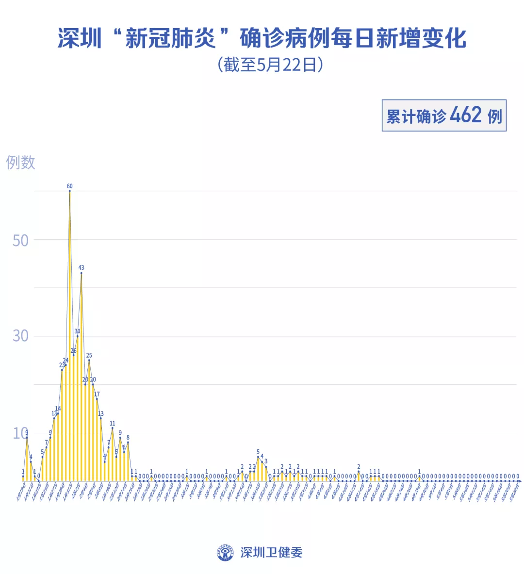 截至5月22日24時(shí),深圳累計(jì)報(bào)告新冠肺炎病例462例。