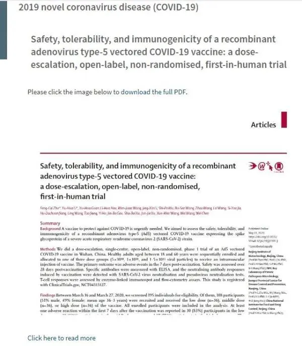 柳葉刀發(fā)布陳薇團隊疫苗試驗結果: