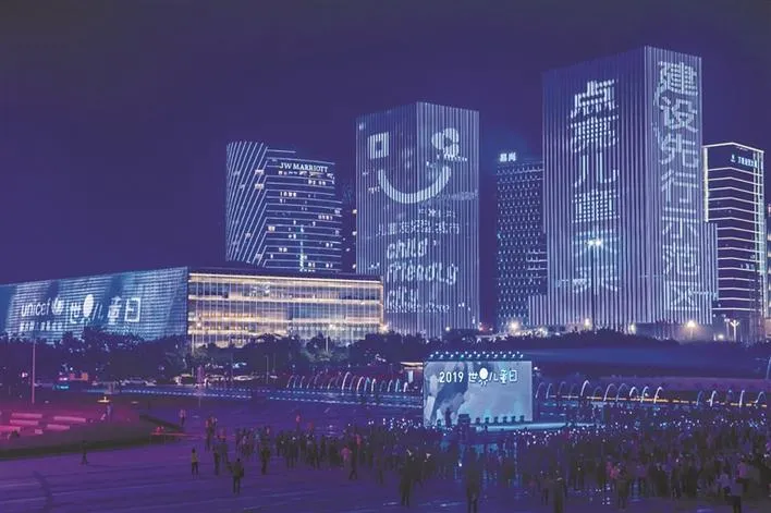 ▲2019年世界兒童日,深圳藍(lán)色燈光“點(diǎn)亮兒童未來”。