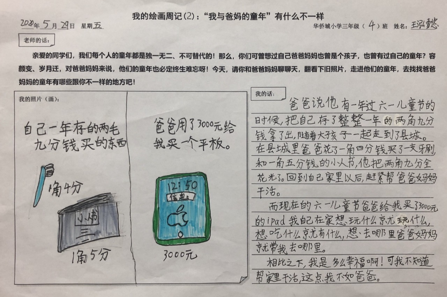 ▲媽媽說(shuō):“那會(huì)兒只有過(guò)六一兒童節(jié),才可以吃到大白兔奶糖。甜蜜蜜的味道,渴望了許久,吃了糖,糖紙都舍不得扔,還悄悄珍藏起來(lái)?!眿寢屵€說(shuō):“那時(shí),沒(méi)有漂亮的公主裙,只有純白的棉布裙,但還是特別的開(kāi)心!”雖然我和媽媽在六一得到的禮物不同,但過(guò)節(jié)的心情都是激動(dòng)又難忘!
