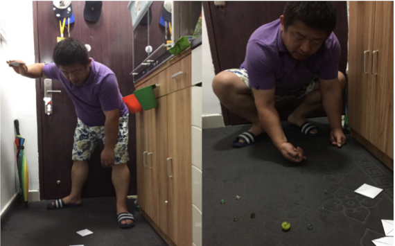 ▲爸爸說,小時候好多玩具都是自己動手做的,拍紙牌,彈彈珠……給他們帶來了很多快樂。