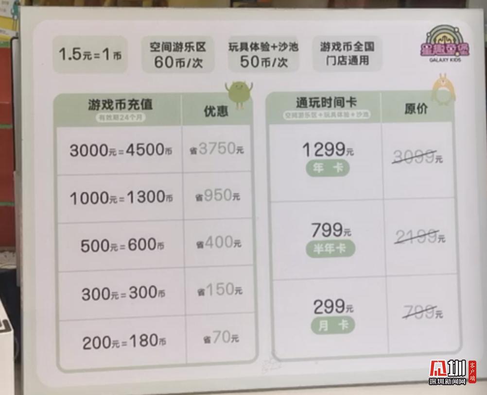 游樂(lè)場(chǎng)內(nèi)多個(gè)游樂(lè)項(xiàng)目,收費(fèi)各有不同,適宜3到12歲的兒童游玩,家長(zhǎng)也可以選擇購(gòu)卡通玩。其中月卡299月,半年卡799元,年卡1299元,家長(zhǎng)可以按需購(gòu)買。游樂(lè)場(chǎng)內(nèi)部潔凈,有大量家長(zhǎng)休息區(qū),前臺(tái)可租借充電寶,還有專門的儲(chǔ)物柜可以放置隨身物品。
