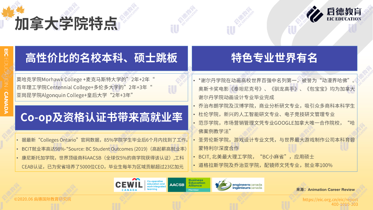 據(jù)最新“ Colleges Ontario”官網(wǎng)數(shù)據(jù),85 %的學(xué)院學(xué)生畢業(yè)后6個(gè)月內(nèi)找到了工作,91%的雇主對學(xué)生表示非常滿意。如康尼斯托加學(xué)院,擁有世界頂級商科 AACSB與工科 CEAB認(rèn)證,為安省培養(yǎng)了5000位 CEO,畢業(yè)生每年為區(qū)域貢獻(xiàn)超過23億加元。而奧斯卡獎(jiǎng)電影《泰坦尼克號》、《馴龍高手》、《包寶寶》均為加拿大謝爾丹學(xué)院動畫設(shè)計(jì)專業(yè)畢業(yè)完成。北阿伯塔學(xué)院的納米技術(shù)專業(yè),杜倫學(xué)院的人工智能專業(yè),道格拉斯學(xué)院的配鏡師專業(yè),范莎學(xué)院的飛機(jī)維修專業(yè)也是世界有名的特色專業(yè)。