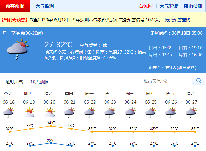 深圳未來3-4天天氣悶熱,午后易出現(xiàn)局地熱雷雨