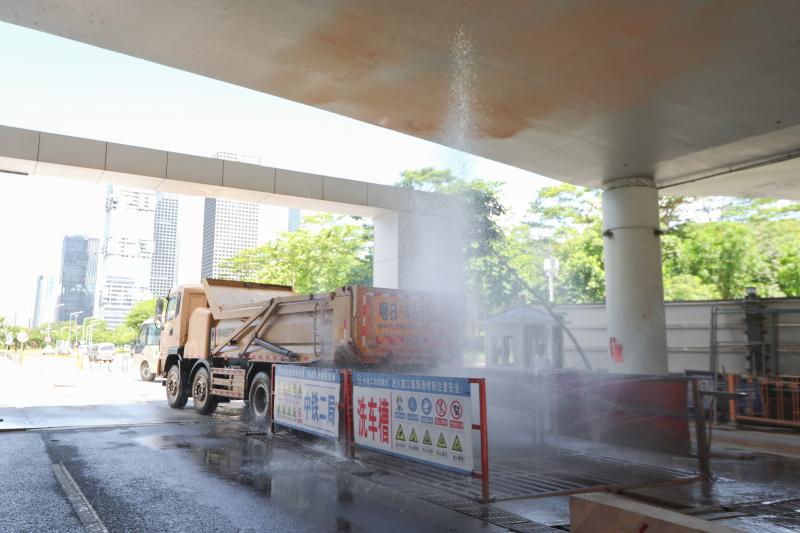 相信很多市民朋友對(duì)自卸車(俗稱“泥頭車”)的印象就是又吵又臟,對(duì)此記者在現(xiàn)場看到,福田區(qū)的工地已經(jīng)用上電動(dòng)自卸車,跟燒柴油的自卸車相比,不僅節(jié)能環(huán)保,且車子運(yùn)行的噪音也非常小。不僅如此,為了防止自卸車“帶泥上路”,工地的出口處還設(shè)有車輛自動(dòng)沖洗系統(tǒng),每輛泥頭車在駛出工地之前,都要經(jīng)歷一次“全身淋浴”,徹底沖干凈車身以及輪胎上的泥土之后才能離開。