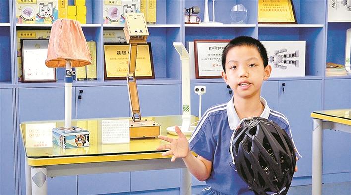 在周奕辰的爸爸看來,在發(fā)明創(chuàng)造的過程也開拓了孩子的思維能力,鍛煉了協(xié)作、溝通、表達(dá)等能力。如今,周奕辰是學(xué)校少先隊的大隊委,是紅領(lǐng)巾廣播站播音員,還加入學(xué)校創(chuàng)客社團、美術(shù)社團、管樂團學(xué)習(xí),還經(jīng)常參加各類美術(shù)、管樂比賽,不但成績優(yōu)秀,綜合素養(yǎng)也全面發(fā)展。