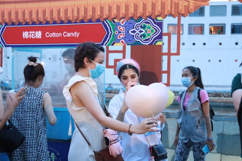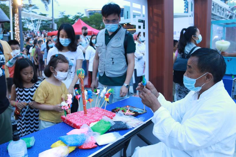 糖畫、捏面人、穿漢服……當晚的海上世界廣場熱鬧祥和,約300人次中外居民歡聚一起,互致美好祝福,在感受中國傳統(tǒng)文化當中共度端午佳節(jié)。