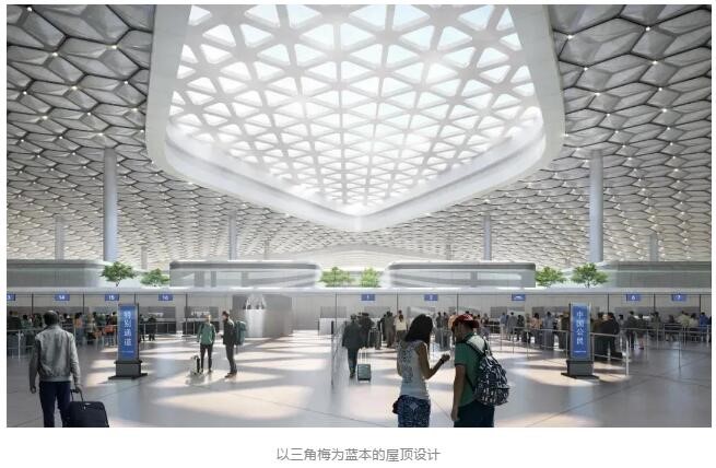 地面公園、主入口廣場以及綠化屋頂以開放、友好的姿態(tài)展現(xiàn)生態(tài)環(huán)保表達(dá)建筑的公共屬性。主入口處外立面向上,展露出內(nèi)部的玻璃幕墻,以開放的姿態(tài)迎接旅客的到來。引入“垂直疊放”設(shè)計策略,高效組織口岸出入境及公共交通換乘,整合聯(lián)系城市綠軸與福田口岸無縫連接,致力在區(qū)域核心打造一個開放、綠色與城市緊密聯(lián)系的公共空間。