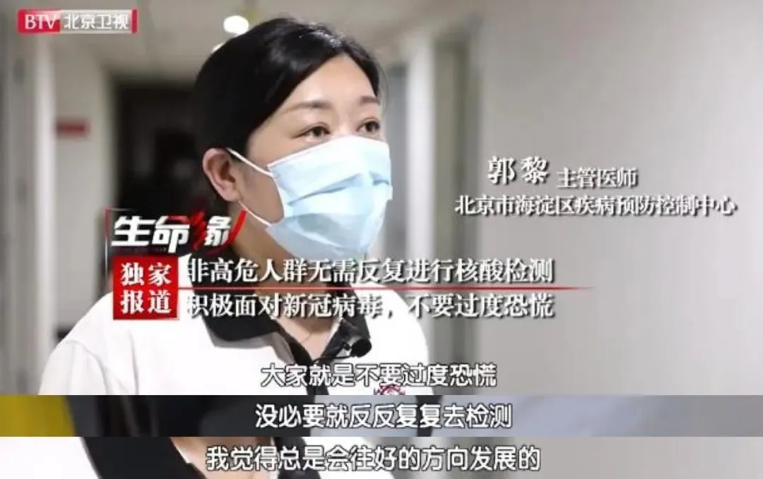 北京市海淀區(qū)疾控中心主管醫(yī)師郭黎認為:如果確定自己沒有接觸過確診病例、疑似病例,也不是密切接觸者的密接,同時不屬于應(yīng)檢盡檢的幾類人群,又沒有出現(xiàn)發(fā)燒、咳嗽等相關(guān)的呼吸道癥狀,就沒必要反反復(fù)復(fù)進行核酸檢測。
