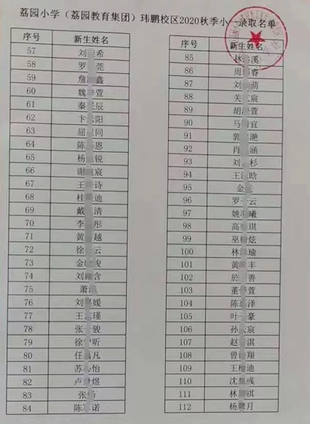 2020年福田區(qū)公辦小一新生錄取名 ...