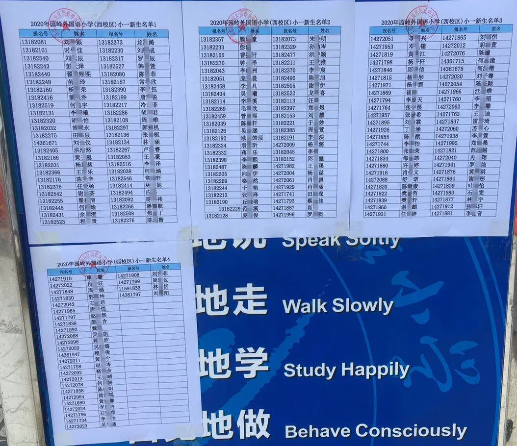 2020年福田區(qū)公辦小一新生錄取名 ...