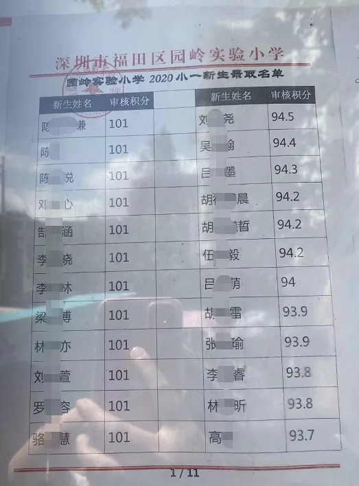 2020年福田區(qū)公辦小一新生錄取名單來了,部分學(xué)校最低錄取積分曝光