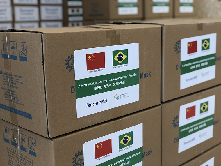為支持國際抗疫合作,在深圳市委外辦指導支持下,騰訊公司聯(lián)合深圳市國際交流合作基金會(以下簡稱“基金會”),向巴西里約熱內盧市捐贈20萬個口罩,其中包含10萬個一次性醫(yī)用口罩和10萬個KN95口罩。7月14日上午,抗疫物資捐贈儀式在福田區(qū)NEO企業(yè)大廈舉行。